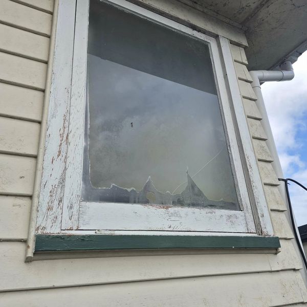 The window was completely broken and was already removed, leaving the house exposed and less secure until it was replaced.